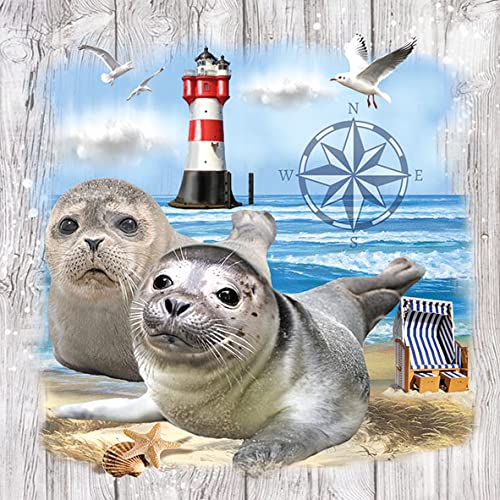 20-ct 6.5 Seal Couple Beach Paper Napkins Party Printed Blue Paper Napkins Seahorse Cocktail Napkins Beach Napkins Paper Coastal Cocktail Napkins Nautical Napkins Beach Themed Party Napkins Starfish