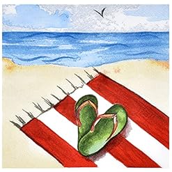 Beach Scenes Beverage napkins serve 200: Gift Boutique watercolor summer cocktail napkins includes 200 Dinner napkins in 4 different designs 50 of each and every! Designs include: flip flops on a red and white beach towel with a beach scene in the background, assorted sea shells on sand, camping tent with a camp fire palm trees near a water, an umbrella with 2 beach chairs at the beach front. These napkins will definitely toughen your table and impress your guests.