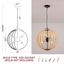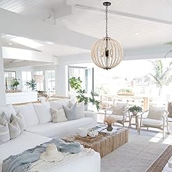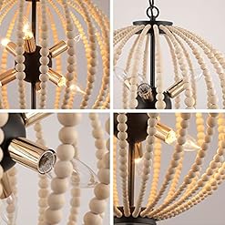 CLASSIC HOME DECO – This 6-light bohemia wood beaded pendant lighting perfectly brings country cottage and farmhouse aesthetics, dining room table, living room, hallway, entryway, foyer, etc. The bohemia wood beaded pendant lighting bring a great ambiance to any space.
