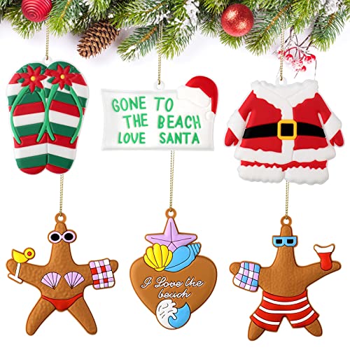 6 Pieces Christmas Beach Ornaments Santa Gone to The Beach Christmas Ornament Ocean Theme Christmas Ornament Christmas Hanging Ornament for Holiday Christmas Tree Party Home Decor