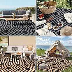 【Easy to Clean & Portable】Outdoor rugs made of polypropylene is easy to clean: Simply hose or wash and air dry without scratching the deck surface. These lightweight outdoor camping rugs come with a carrying bag for easy folding, storage, and carrying