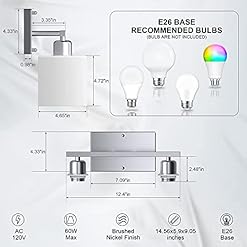 ✨【E26 Standard Sockets】 The bathroom vanity light requires 2 x E26 medium base bulbs (Max 60W for each light). Bulbs not included. You’ll be able to update the atmosphere of your home by changing the color temperatures of the bulbs. That means You’ll be able to use the daylight bulbs for a bright atmosphere and the warm white bulbs for a cozy atmosphere. These bathroom light fixtures also work well with most dimmers in the USA for the dimmable function.