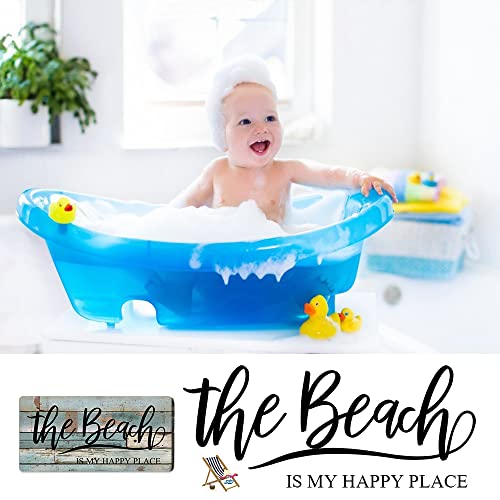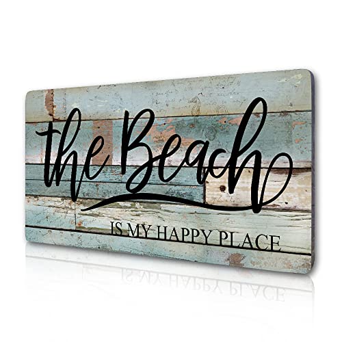 TIANCENTRAL H Beach Decor Wall Hanging Sign Vintage Coastal Wall Decor Beach Signs-The Beach is My Happy Place by 16×8 Inches for Home Living Room Bathroom Decor