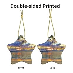 Printed design: Tropical Beach coastal sunset Pentagram ceramic hanging elegant printed design style lends the ornaments an enhanced texture, bright designs created from original artwork. Each ceramic pentagram ornament design is thoughtfully crafted by our talented illustrators, adding a distinct seasonal touch to your Christmas tree.