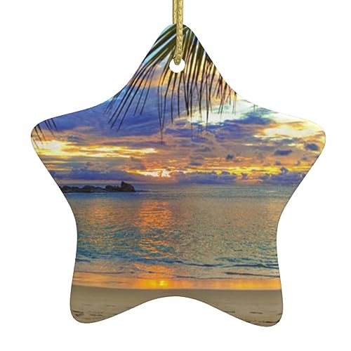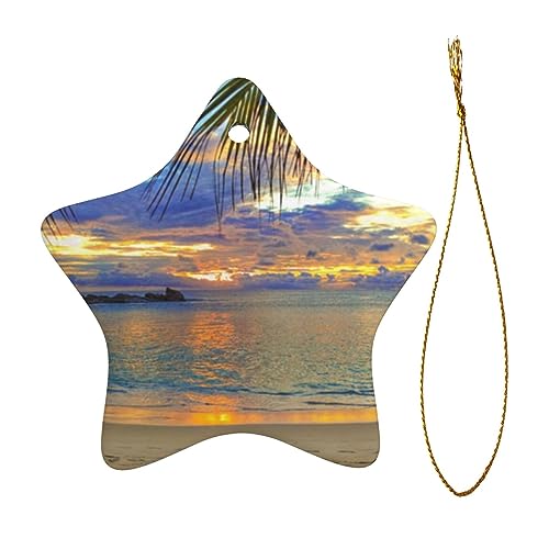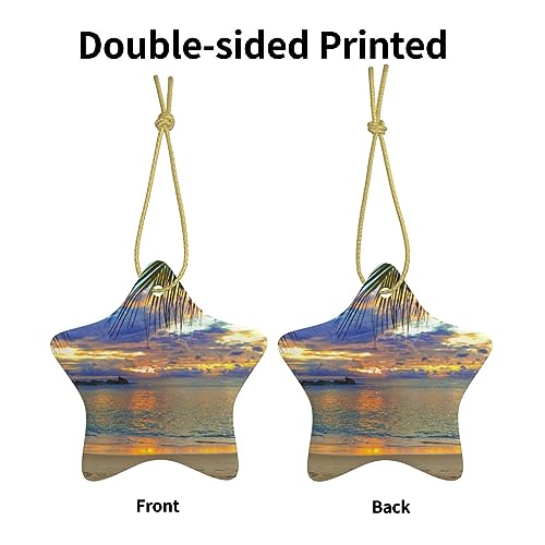 Printed design: Tropical Beach coastal sunset Pentagram ceramic hanging elegant printed design style lends the ornaments an enhanced texture, bright designs created from original artwork. Each ceramic pentagram ornament design is thoughtfully crafted by our talented illustrators, adding a distinct seasonal touch to your Christmas tree.
