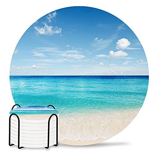 Drink Coasters : Our coasters are made of ceramic stone, absorbs the moisture that drips from your cup, keep it dry; The bottom of drink coasters are made by cork, offer protection to table from scratches and abrasion.