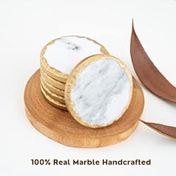 Be the first to review “Dear Casa Gold Edge Coasters for Coffee Table (Round) —Set of 6— Handcrafted Real Solid White Marble Coasters— Perfect as Drink Coasters Housewarming Gift — Modern Coasters for Drinks (Round)” Cancel reply