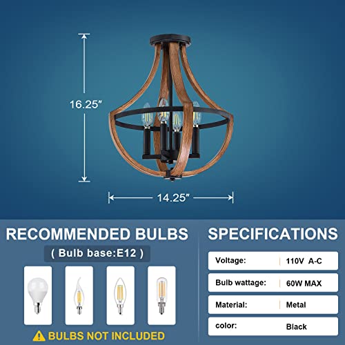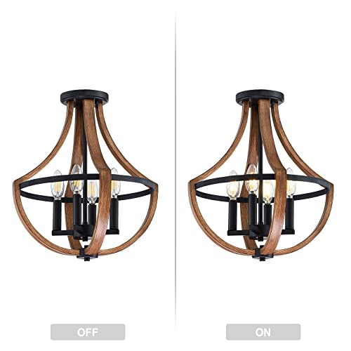 Doraimy Lighting fixtures Brand new Farmhouse 4 Light Rustic Semi Flush Mount Ceiling Light Fixture Black Hand-crafted Brown Finish,Vintage for Hallway Dining Room Kitchen Island Bedroom