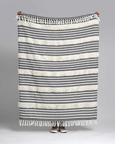Fab Habitat 100% Cotton Fringe Throw Blanket with Tassels – Breathable All-Season – Warm, Super Soft, Machine Washable – Perfect Accent for Sofa & Bed – Domenech – Gray, 50 x 60