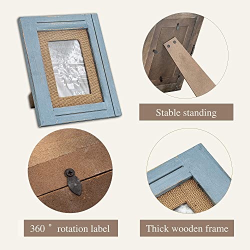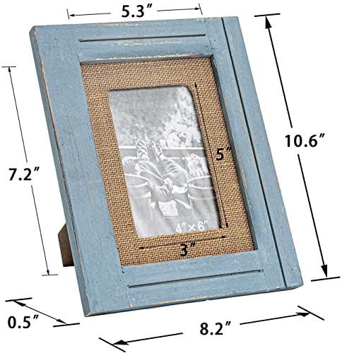 RiteSune Farmhouse Picture Frame, Wooden Photo Frame 4×6 Tabletop and Wall Mounted, Picture Frame Collage Present for Holiday, Festival (Blue)