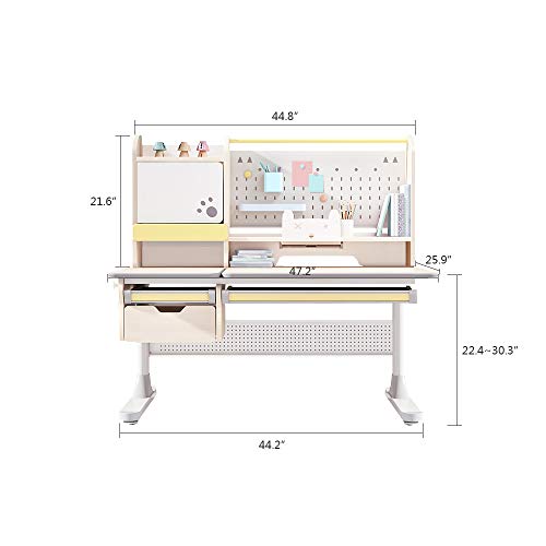 ✅LARGE 47” DESKTOP WITH ADJUSTABLE HEIGHT: The height of this desk can be adjusted to keep up with your fast-growing kids. (Easily rotate the knob to raise or lower the height. Once the height is set, lock the knob to keep it stable without shaking and tilting
