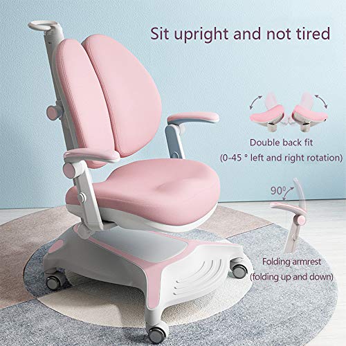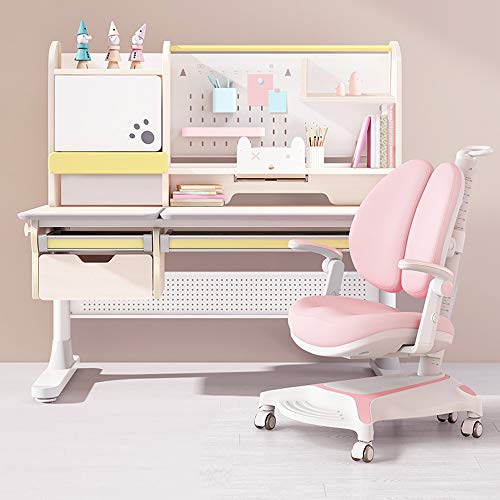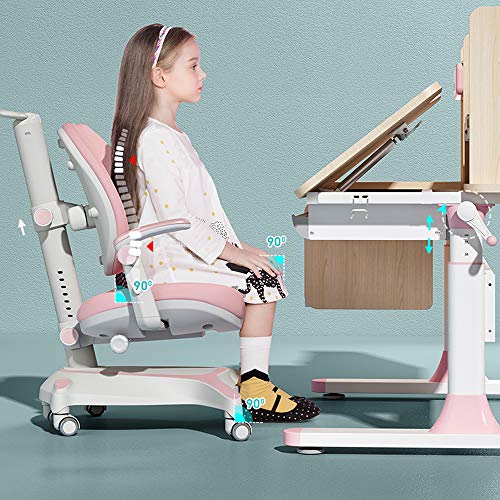 FCD Large Real Wood Adjustable Kids Study Desk Ergonomic Multi Function Drafting Table with Ergonomic Study Chair and Eye Protection Lamp (Desk+Pink Chair+Light)