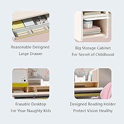 ✅MULTI-FUNCTION: This kid’s table is designed with a bookshelf, hutch, drawer, and book holder. Gives kids various storage space for school supplies. Featuring an embedded pull-out drawer with compartments for pens, papers, utensils, and stationeries