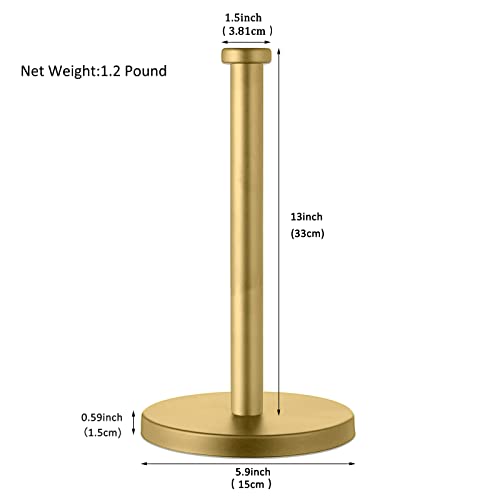 GWGTHZ Stainless Steel Paper Towel Holder, Gold Paper Towel Holder Countertop for Kitchen Bathroom, Standing Paper Towel Holder with Weighted Base for Standard or Rolls Brushed Brass, (Gold)…