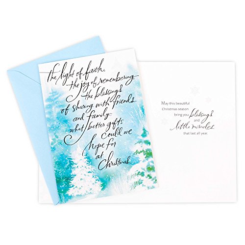 Warm the hearts of your holiday card recipients this year with these lovely greeting cards featuring a glittery forest scene in green and blue and wishes for blessings this holiday season and all the time. With 16 cards and 17 envelopes, this pack includes just the correct amount for sharing holiday greetings with the family and friends closest to you. Buy several packs to send a Christmas need to everyone on your list. The Hallmark brand is widely recognized as the perfect for greeting cards, gift wrap, and more. For more than 100 years, Hallmark has been helping its customers make on a regular basis moments more beautiful and celebrations more joyful.