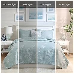 Harbor House Seaside Cotton Precale Coverlet Set creates a calm coastal look for your bedroom. The embroidered starfish and seashell motifs on an aqua background enhances the coastal look for an informal update. The square decorative pillow has polyester filling and features embroidered coral to complete the look. The bedding set comes prewashed and is machine washable for simple care. Included within the set is 1 coverlet, 2 matching shams, and 1 decorative pillow. This bedding set could also be OEKO-TEX certified, meaning it does not contain any harmful substances or chemicals, ensuring quality comfort and wellness.