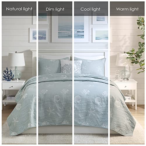Harbor House Seaside Reversible Cotton Quilt Set Coastal Clam, Starfish, Coral Embroidery, All Season, Pre-Washed Coverlet Bedding Layer, Decorative Pillow, King/Cal King(108″x90″) Seafoam 4 Piece