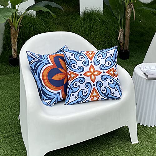 Hckot Outdoor Waterproof Throw Pillow Covers for Patio Furniture Set of 4 Floral Printed Boho Decorative Farmhouse Pillow Covers for Couch Garden Tent Balcony 18×18 inch