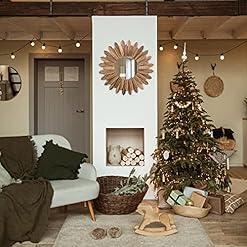 Easy to Hang—Measure at 21 inch diameter with wood frame and diameter of 9 inch for mirror; Hang this stunning mirror in your bedroom over your bed, in your hallway or entryway, over your living room sofa.No any assembly, fairly easy to hang at the wall; Comes with anchor and screw