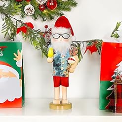 SUMMER SANTA NUTCRACKER: Joliyoou nutcracker figure is creatively designed in the appearance of a Santa wearing a summer Hawaii styled shirt, which makes it look like the Santa is gonging to beach to spend his coming Christmas holiday vacation.