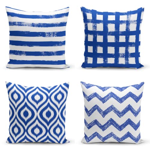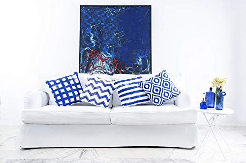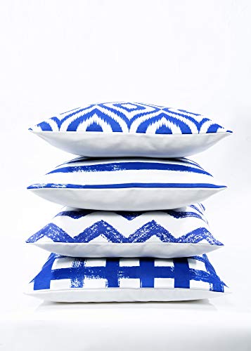 KAAXSA Throw Pillow Covers Decorative for Couch Cushion Bed Living Room Patio Outdoor and Farmhouse Modern Home Decor Set of 4 18×18 Inch Blue White Color