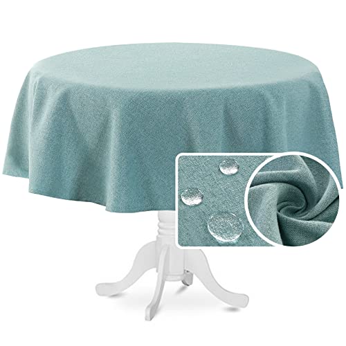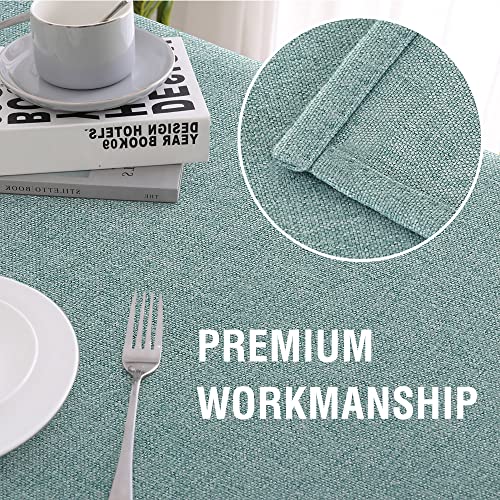 H.VERSAILTEX Linen Textured Tablecloth Round 60 inch Waterproof Solid Linen Woven Tablecloth Spill-Proof Linen Look Cover for Party Table Feature Extra Soft and Thick Fabric Wrinkle Free, Aqua