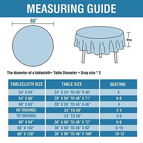 MULTIPLE APPLICATION: Our tablecloths create the easiest look for various happy occasions— perfect for on a regular basis use, party, holidays, catering, cafes, special occasions, dinners, brunches, potlucks, BBQ’s, buffets, baby showers, indoor and outside use, weddings and more