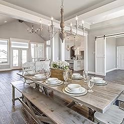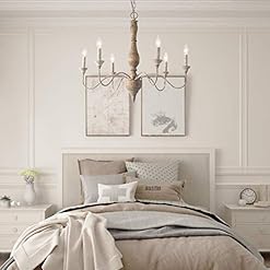 HANDMADE DISTRESSED CHANDELIER: In addition to being UL listed for safety, the distressed wood, rust-colored arms, chain and canopy, and every part is completely handmade, bringing an affordable luxury along with unique French country sensations to your sweet home.