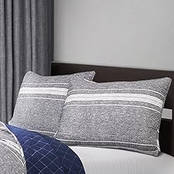 Neutral Gray and stylish texture printed stripes come in combination on this marlton stripe 3 piece quilt set. Printed on soft micro fiber, this reversible quilt features a solid color with quilting main points at the back. Two matching shams complete the look.