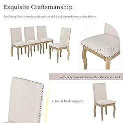 ★Exquisite Craftsmanship★ Our Dining Chair is deeply cushioned and richly upholstered in top-quality fabrics. Antique-bronze nailheads outline the seat and back. Comfortably seats up to 4 people. The thickness of the cushion of chairs is 2.75 inches. Four high-back upholstered chairs have a curved chair back top styling to provide better back toughen.