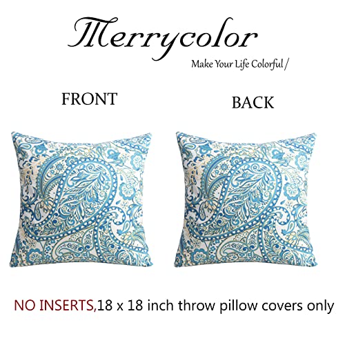Merrycolor Outdoor Waterproof Throw Pillow Covers 18×18 Inch Set of 2 Paisley Pattern Decorative Square Farmhouse Outdoor Pillows for Funiture Garden Patio Furniture Cushion Cases (Blue and Teal)