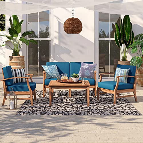 Christopher Knight Home Carolina Outdoor Acacia Sofa Set, 4-Pcs Set, Brown Patina + Cream Cushion