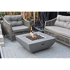 Modeno Westport Outdoor Fire Pit Propane Table 34 Inches Square Firepit Table Concrete High Floor Clearance Patio Heater Electronic Ignition Backyard Fireplace Cover Lava Rock Included