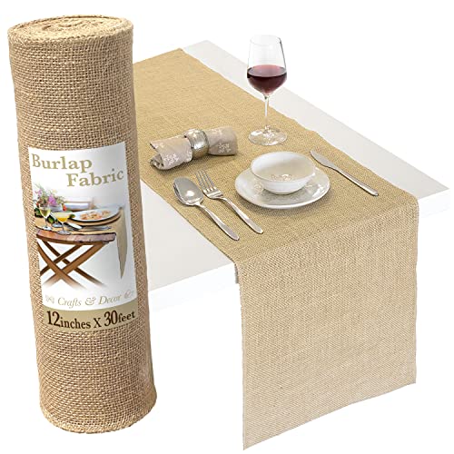 Natural Burlap Table Runners – 12 Inch x 30 Foot Burlap Roll for Dining Room Table, Mantel and Outdoors – Rustic Farmhouse Jute Table Runner Décor for Parties, Weddings, and Holidays