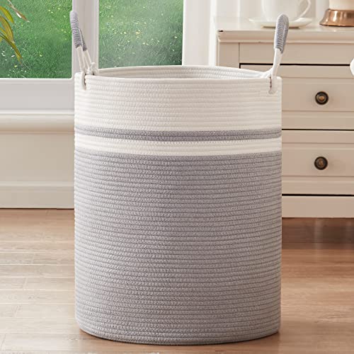 OIAHOMY Laundry Hamper Cotton Rope laundry Basket, 58L Large Woven Clothes Hamper, Collapsible Laundry Baskets with Handles, Nursery Hamper, Storage Clothes Blanket Toys in Bedroom, Baby Room (Grey)