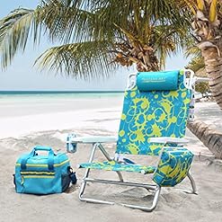 Old Bahama Bay Reclining Beach Chair Backpack 5-Position Lay Flat Lounge Chair for Adults Heavy Duty Portable Folding Lightweight with Cooler Bag Camping Chair for Sand Outdoor Yellow Green