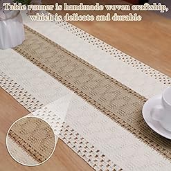 ◆Design – OurWarm table runner features delicate Cream and burlap color cotton thread weaved hollow striped cotton fabric with tassel, giving a minimalist feel and boho charm, to give your table a new look. Upgrade your interior design today. Let your family or friends surprise and praise