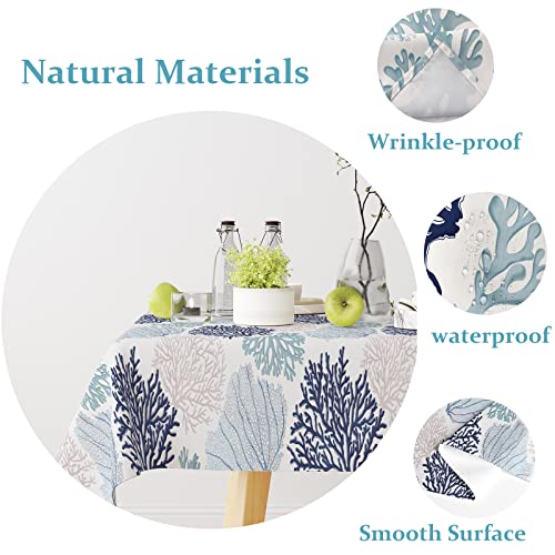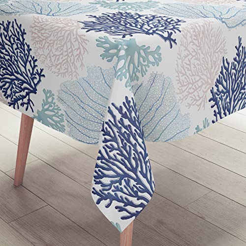 Ocean Tablecloth Coastal Nautical Rectangle Tablecloth Coral Print Ocean Themed Beach Decorative Waterproof Table Covers for Outdoor Dining Room Kitchen Living Room, 60×84 Inches, Navy/Blue/Teal/