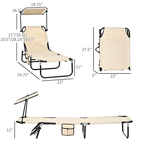 Outsunny Folding Chaise Lounge Pool Chairs, Outdoor Sun Tanning Chairs with Canopy Shade, Reclining Back, Steel Frame and Side Pocket for Beach, Yard, Patio, Tan