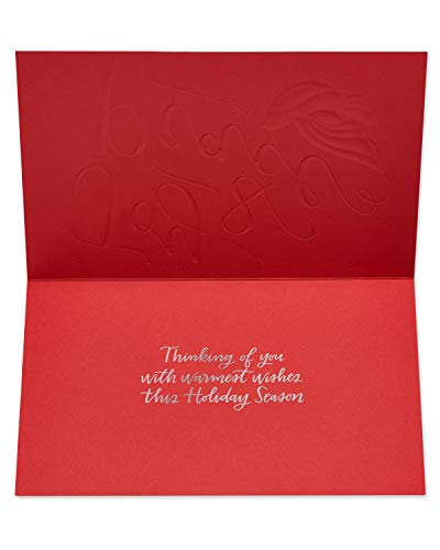 Share a message of joy and peace with this elegant set of Christmas boxed cards by Papyrus. Made with a shocking deep emboss process highlighted by shimmering silver and gold foil, this print features beautiful script and a dove on a bright red background. Offered in a well-liked 5 x 7” size, these Christmas stationery cards boast Papyrus-quality artwork highest for both personal and professional holiday greetings.