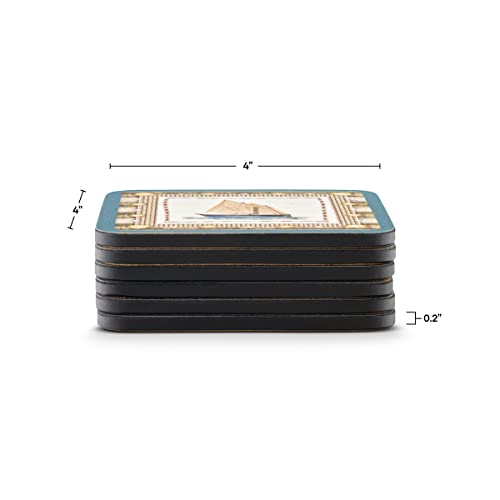 Pimpernel Coastal Breeze Collection Coasters | Set of 6 | Cork Backed Board | Heat and Stain Resistant | Drinks Coaster for Tabletop Protection | Measures 4” x 4”
