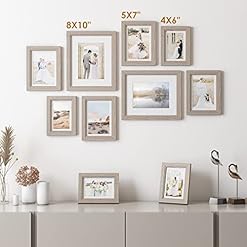 Set of 10 Different Sizes Frames: Including 4×6”(4pcs), 5×7”(4pcs), and 8×10” (2pcs) photo frames.