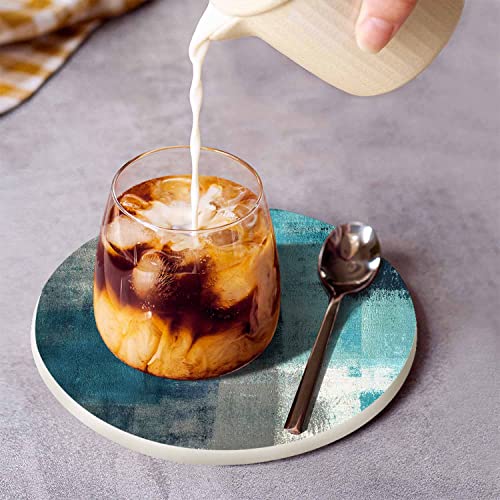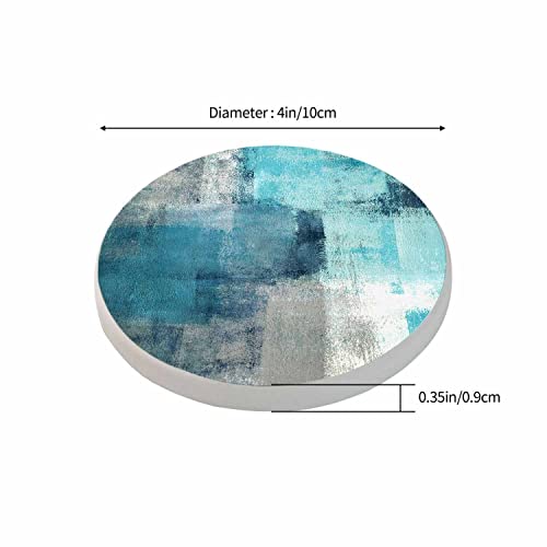 Pznen Turquoise and Grey Abstract Art Brush Coasters for Drinks Modern Artwork Doodle Classic Grain Patchwork for Tabletop Protection Coffee Table Living Room Kitchen Office Home Decor 2 Pcs,4 Inch