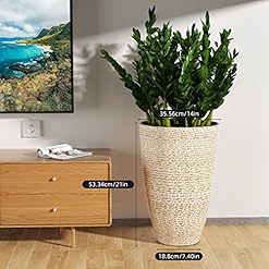 【Powerful Capacity】:You’ll get large outdoor planters 2 in package in the same size. The planters for outdoor plants size are about 14*7.4*21 inch.Soil Capacity: 7.8 gallons per planter.The large planter is used for outdoor plants and its wide opening allows it to meet your different gardening needs.(Plants don’t seem to be included).
