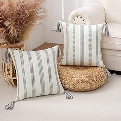 CHIC DESIGN: Woven stripes in grey and cream white, which is a classic color matching, plus the cute tassels at the four corners, the couch pillow covers can be added just about anywhere you want them
