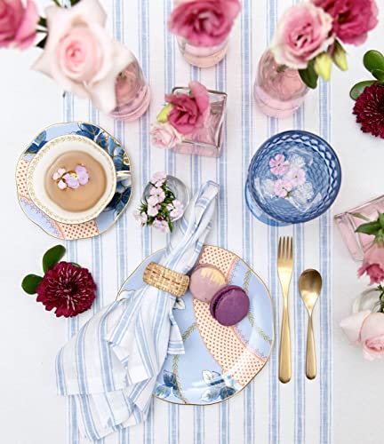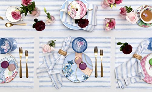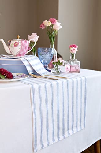 Solino Home Stripe Linen Table Runner 90 inches Long – 100% Pure Linen 14 x 90 Inch Table Runner, Sky Blue and White Capri Ticking Stripe – Dresser Scarf Dining Table Runner for Christmas, Holiday
