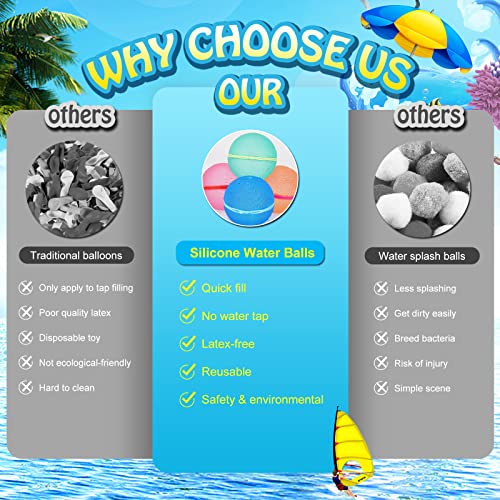 【Widely Application For More than a few Scenarios】 These water balls are perfect for outdoor activities in swimming pools, beaches, or even your backyard, start the water fight game anytime anywhere you need with our water bombs, nobody can resist the fun of water game toys in summer.