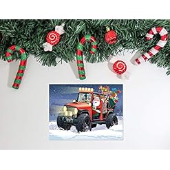 Santa delivers makes his deliveries in a 4WD. Four wheeling to the town! Amount: 18 cards and 19 white envelopes