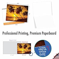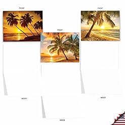 10 BLANK NOTE CARDS – Inside text is blank with no greeting. If you are on the lookout for a stunning assortment of tropical and soothing cards perfect for all occasions, then look no further! These beautiful photographs feature palm tree silhouettes against soothing orange sunsets. Sail away to the relaxing tropics in the beginning glance. Customize your personal message. Ships with envelopes and reusable box.