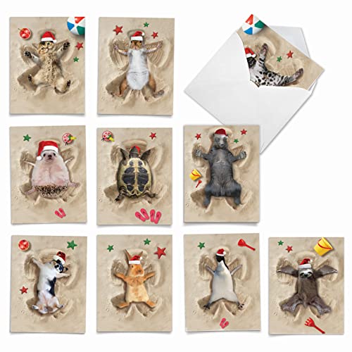 The Best Card Company Variety Pack of 10 Christmas Greeting Cards with Envelopes, Humor Holiday Assortment for Men and Women (10 Designs, 1 Each) – Holiday Sand Angels AM6844XSG-B1x10